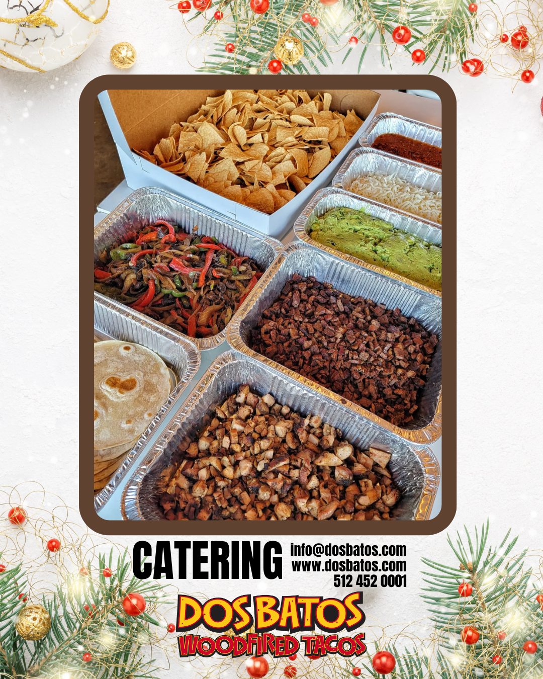 Let Dos Batos make hosting easy with signature creations, freshly prepared every day over real flames. Treat your guests to Pirata steak tacos, hearty tortas, craveable nachos, and zesty housemade sauces. Enjoy gatherings big or small with unforgettable taste and effortless convenience from the neighborhood's go-to for authentic, made-to-order local catering.